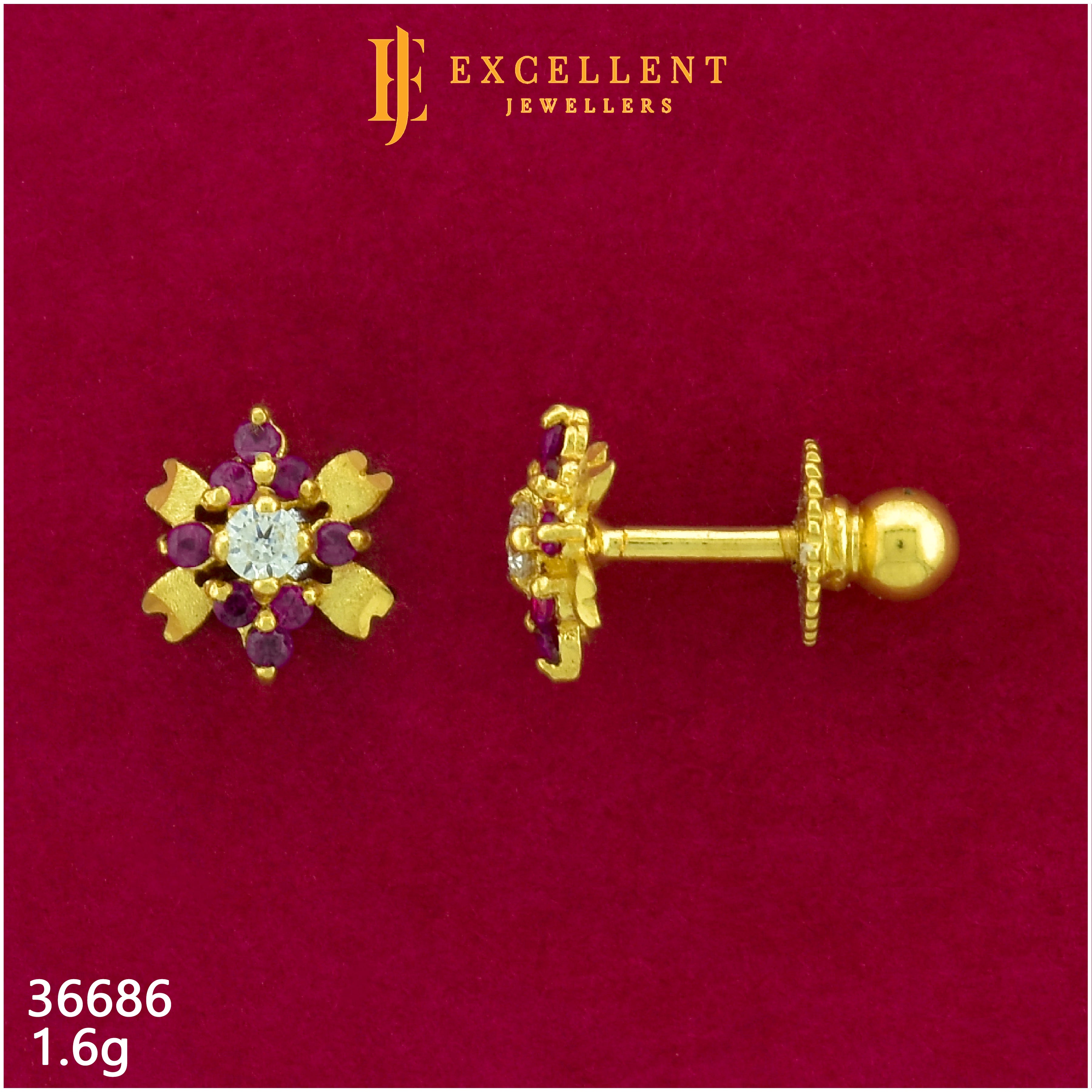 A stylish fancy new arrival flower design earring with ruby and Cubic Zirconia.