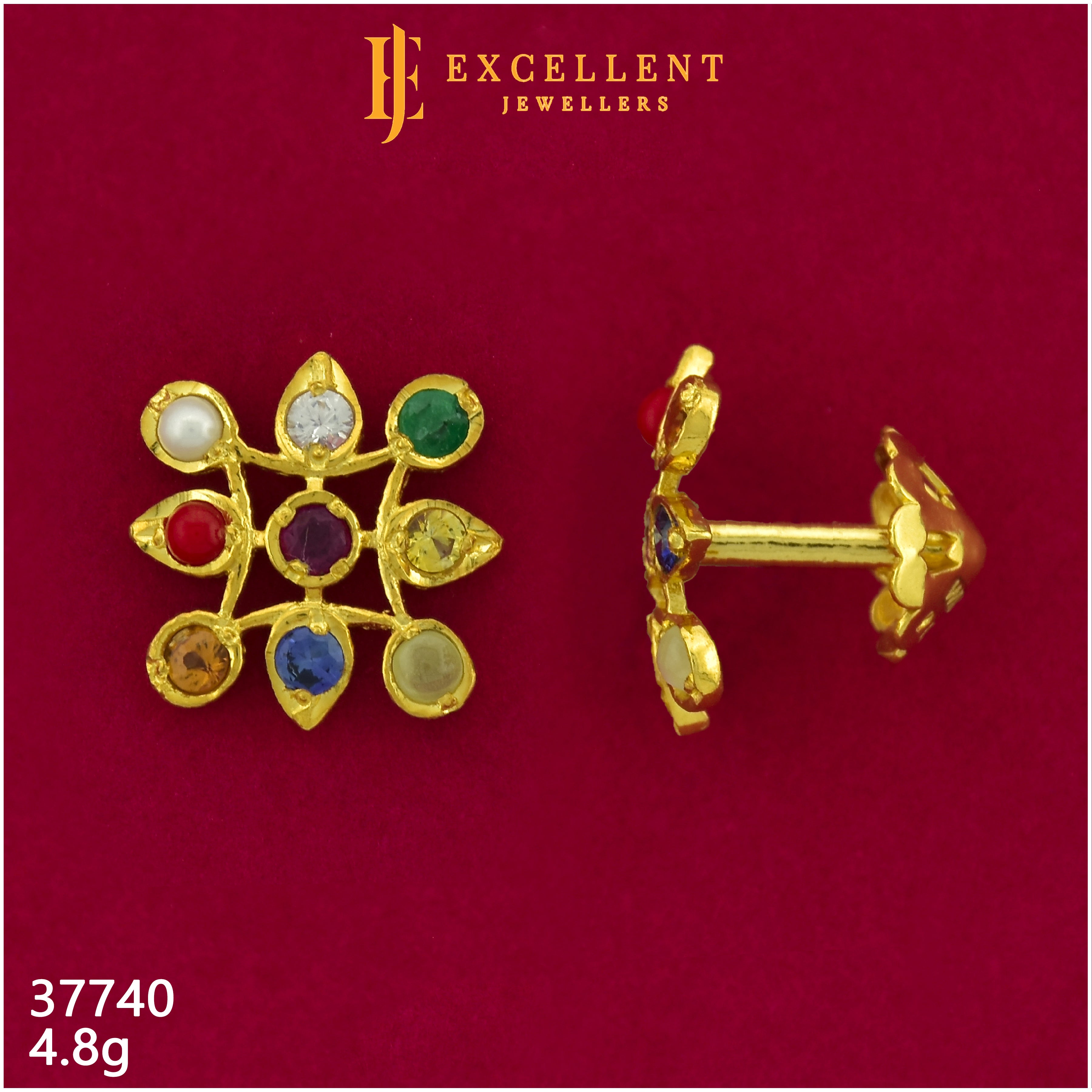 A Traditional Navaratnam earring Ruby Pearl Coral Diamond Emerald Yellow Sapphire Blue Sapphire Hessonite Garnet Cats eye.