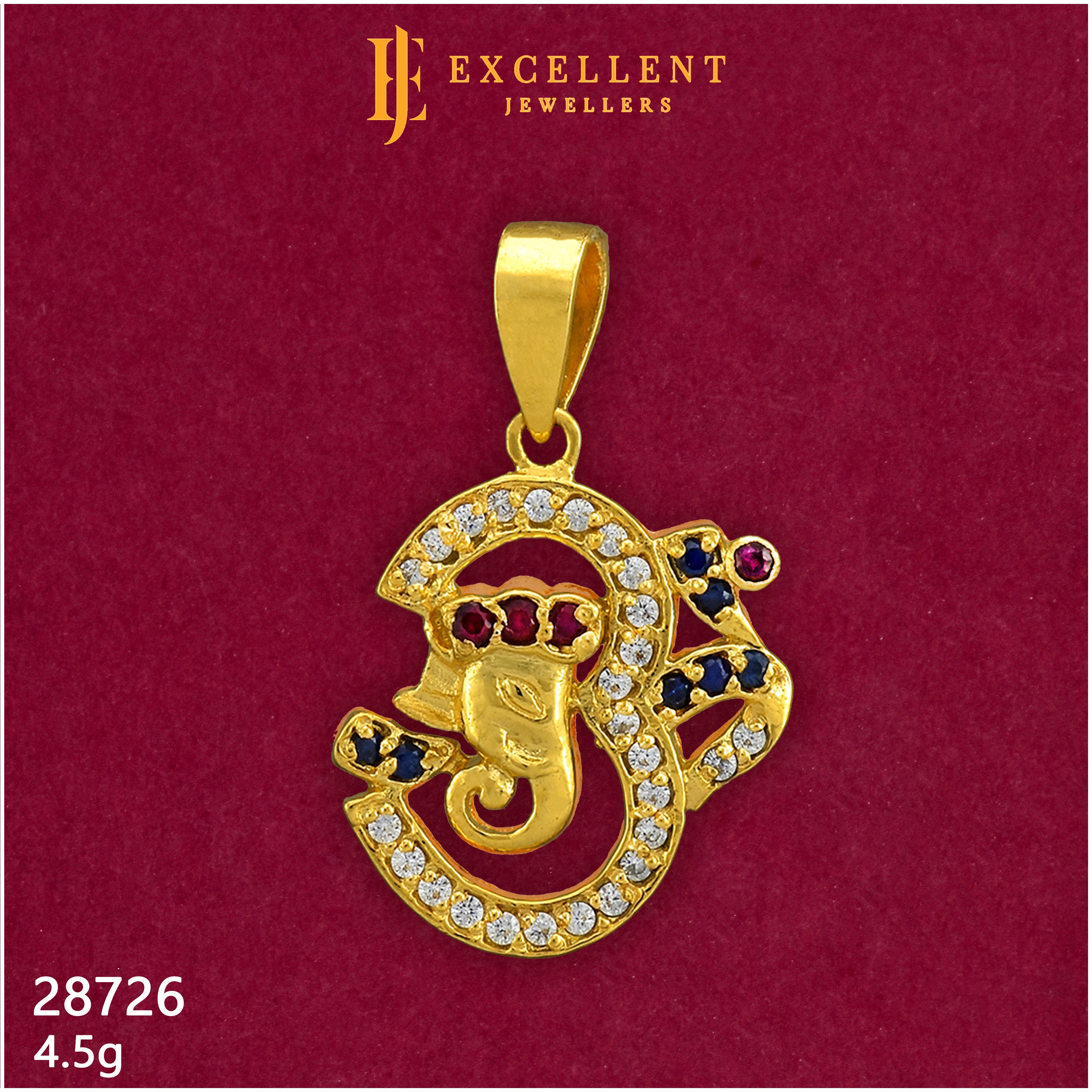 Lord Ganesh with om pendant studded with blue sapphire, ruby and cubic zirconia.