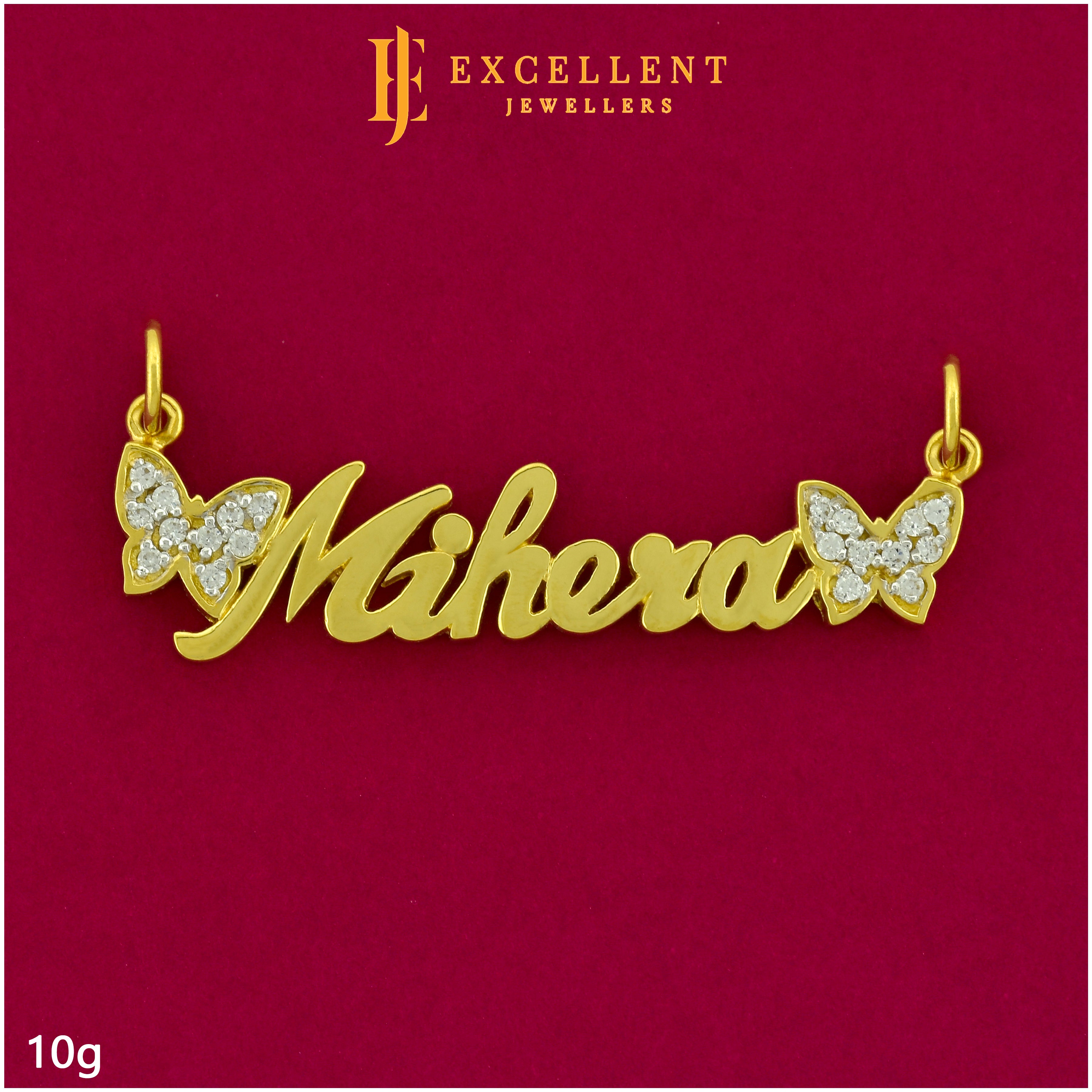 A charming Gold Name Pendant Made with Cubic Zirconia stone design.